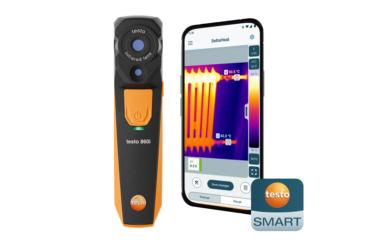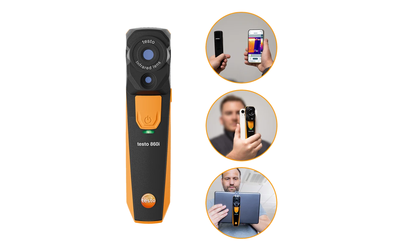 全新德图智联型掌上红外热像仪 testo 860i 操作便捷,可在德图智能应用中直观显示,是暖通空调、设备维护、建筑检测等众多领域快速抽查的理想选择。